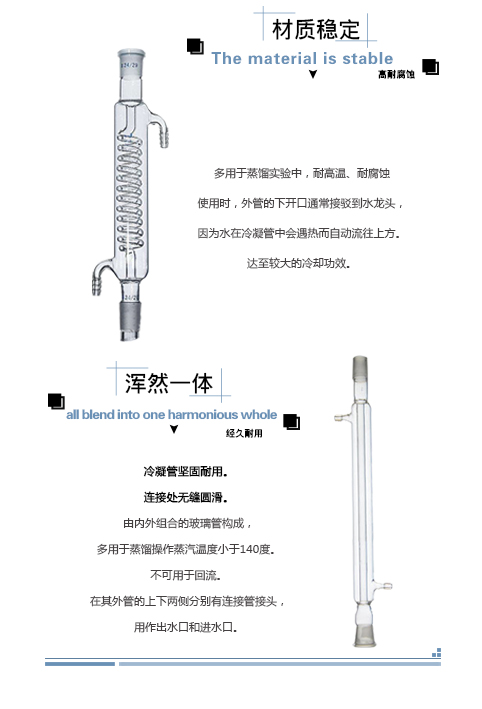冷凝管(蛇形冷凝管、球形冷凝管、直形冷凝管