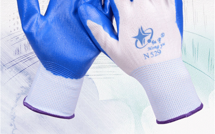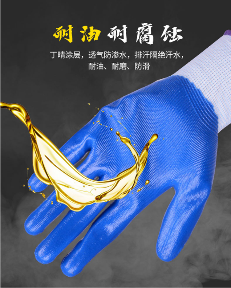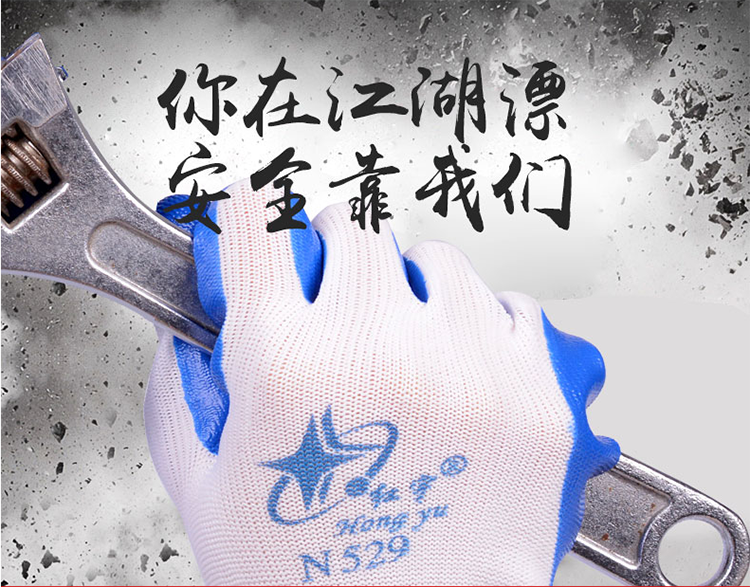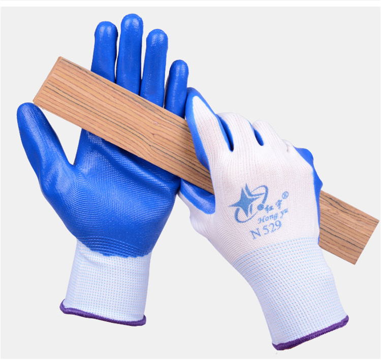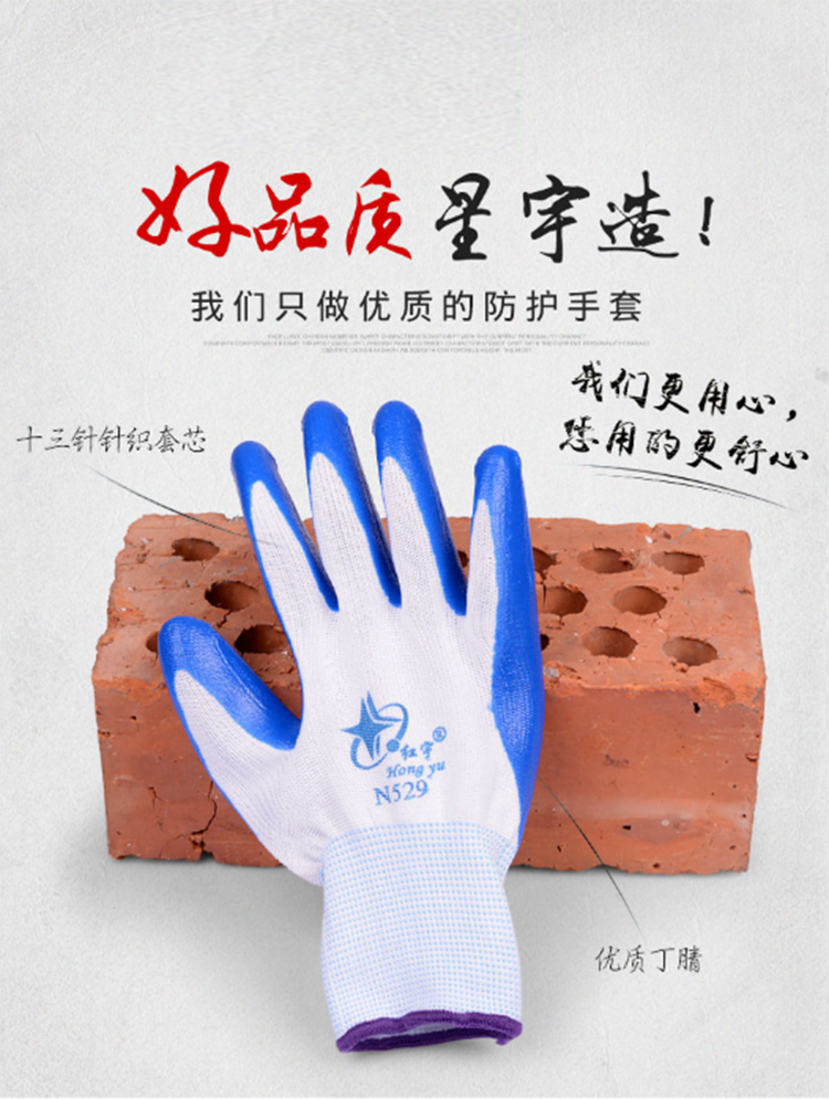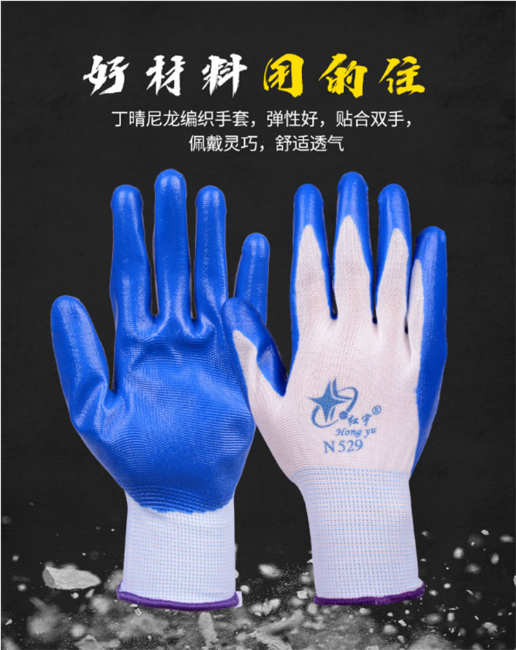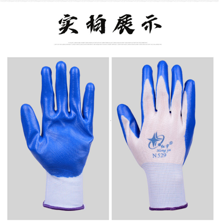N529丁晴橡膠勞保手套浸膠尼龍耐磨防滑工作干活工地防護(hù)手套